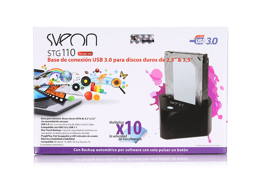 Sin necesidad de instalar el disco en ninguna carcasa. Tan solo elija el disco duro donde tiene almacenada la información e insértelo en STG110: podrá acceder a los archivos contenidos en él al instante. STG110 soporta discos SATA I, SATA II y SATA III de 2,5” y 3,5” y hasta 4TB de capacidad.