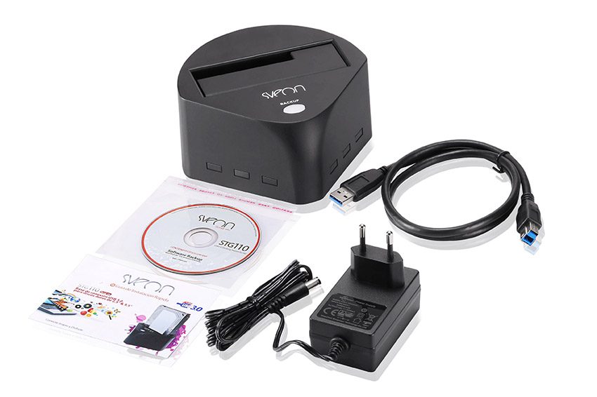 STG110 incluye un software con el cual, una vez instalado en el ordenador, podrá realizar copias de seguridad de los archivos de su PC. Tan solo debe conectar el disco duro, donde desee que se realice la copia, a STG110 y éste al PC. Con solo pulsar el botón del frontal de STG110 comenzará la copia de seguridad.